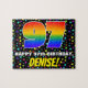 Este design de quebra-cabeça de quebra-cabeça colorida e atraente, com tema de aniversário, apresenta um grande número "97" com um padrão de gradação inspirado no espectro multicolorido do arco-íris, juntamente com a mensagem "FELIZ 97º ANIVERSÁRIO", e um nome de destinatário personalizado. O fundo apresenta um padrão de estrelas divertidas e multicoloridas. Um vibrante e personalizado quebra-cabeça de aniversário como este pode ser usado para reconhecer o aniversário de 97 anos de alguém. [~Z0000607]