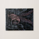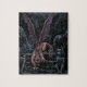 Um dragão persegue-se manobradamente numa escada esmagada, guardada por gárgulas de pedra abandonadas. As estruturas góticas desmoronam-se ao fundo.