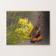 Este quebra-cabeça personalizado apresenta uma fotografia colorida de uma borboleta TortoisesInferno de Milbert, cor de laranja, preto e branco, com pêlos corporais escutados sobre um aglomerado de flores amarelas. Clique em Personalizar! para adicionar texto em um estilo de fonte, tamanho e cor preferidos. Você também pode selecionar esse trabalho em um quebra-cabeça de 8" x 10" que vem em uma lata. Foto ©Patricia AZ Phillips