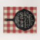 Este divertimento, quebra-cabeça colorido caracteriza um vermelho verificou o tablecloth e um frigideira do ferro fundido com as palavras "felicidade é um frigideira temperado bom do ferro fundido" através da parte dianteira. Faz um grande presente para cozinheiros, entusiastas e coletores do ferro fundido!