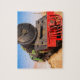 Um condutor se inclina pela janela de um motor a vapor no deserto da Jordânia. Este trem construído japonês estava viajando pelo deserto da Jordânia. Este quebra-cabeça é totalmente personalizável.