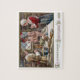 Um homem do peregrino e uma mulher e um nativo americano estão em torno da mesa de comensal em uma cabana rústica de madeira neste cartão da acção de graças do vintage desde 1912.