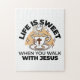 Esta design 'A vida é doce quando você caminha com Jesus' mostra uma equipe cristã com uma cruz e uma pomba pacífica, perfeita para lembrá-lo do calor e conforto encontrados na fé. Excelente para produtos de temas cristãos como t-shirts, autocolantes ou canecas. #WalkWithJesus #FaithandBeba #LifeIsSweet #JesusCristo