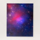 Abell 2744, Cluster de Pandora. Esse aglomerado de galáxias gigante é o resultado de um empilhamento simultâneo de pelo menos quatro clusters separados, menores, de galáxias, que ocorreu ao longo de 350 milhões de anos. As galáxias do aglomerado compõem menos de 5% de sua massa. O gás (cerca de 20%) é tão quente que brilha apenas em raios X (vermelho colorido nesta imagem). A distribuição de matéria escura invisível (fazer em torno de 75% da massa do aglomerado) é colorida aqui em azul.