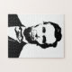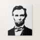 Este quebra-cabeça de quebra-cabeça apresenta uma imagem a preto e branco do presidente dos Estados Unidos, Abraham Lincoln.