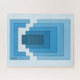 Retângulos e formas retangulares em vários tons de azul são a base deste abstrato/trabalho de arte geométrico original, de Richard H. Fay.