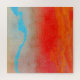 Um design abstrato de um pôr do sol oceânico com cores ousadas em vermelho, laranja, ciano, azul e bege.