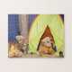 Este quebra-cabeça caracteriza o acampamento indo dos retrievers dourados. Se está brindando marshmallows pelo fogo, quando o outro relaxar na barraca.