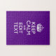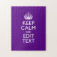 Seu personalizado "Mantenha Calma" dizendo em uma bela decoração personalizada do estilo de sotaque roxo. Um estilo "Manter Calmo" personalizado dizendo em um presente gentil. Humorístico ou caprichoso experimente suas palavras criativas em duas linhas editáveis de texto. Lembre-se de usar letras CAPITAL para obter melhores resultados. Use o link "Perguntar a este Designer" para entrar em contato conosco com suas solicitações especiais de design ou para obter assistência com suas necessidades de personalização.