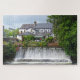 Uma casa com um jardim com uma cascata em frente ao rio Corrib, Galway, Irlanda.