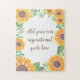 Esta quebra-cabeça única de serra-de-vidro é decorada com girassol e verde-aquarela. Você pode adicionar citações inspiracionais ou mensagens motivacionais na tipografia de na moda. Facilmente personalizável, você pode alterar a fonte e a cor do texto. Original Watercolor © Michele Davies.