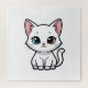 Cute sitting cat with heterochromia (blue and brown eyes).
