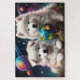 Puppies brancos Samoyed Fluffy Adoráveis Puppies Coloridos fundo espacial. Sentado em frente a uma Terra Globe AI ART por minx267