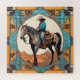 Um retrato de uma pessoa em um cavalo com um fundo desértico e uma fronteira abstrato. Criado com a ajuda da IA de um design original meu.