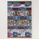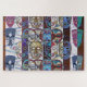 This painting showcases a curated selection of traditional African masks that are beautifully rendered in intricate details and vibrant colors .The diversity of African cultures is reflected in the array of masks, each with its own deep lovely style and symbolism.A wonderful alternation of parallel color stripe rectangles between brown and white with waves of patterns.
