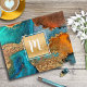 Quebra-cabeça Agate watercolor monograma turquesa de ouro laranj