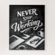 Este impressionante design em preto e branco no estilo de revista captura a essência da dedicação e perseverança através de sua tipografia em negrito e composição visual limpa. A frase “Nunca Pare de Trabalhar” está no centro em um estilo artístico e decorativo, simbolizando esforço contínuo e uma mentalidade inquebrantável.