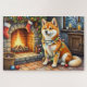 Quebra-cabeça Akita Sitting by Fireplace with Christmas Lights