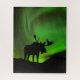 Quebra-cabeça Alce com Aurora Boreal Verde, Alasca