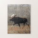Quebra-cabeça de Alce Macho. Um alce macho anda pesadamente pela vegetação rasteira em uma área de colinas de areia no sudeste de Alberta, Canadá. Alces parecem fora de lugar neste terreno seco e arenoso que tem muito pouca água para suportar a vegetação aquática de que os alces normalmente se alimentam.