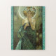 Quebra-cabeça de Alphonse Mucha Clair De Lune. Pintura alegórica da litografia. Alphonse Mucha é famoso para seus propagandas e posters do nouveau da arte que caracterizam as jovens mulheres bonitas cercadas por flores e pela ornamentação intrincada. Clair de Lune ou a estrela de noite caracterizam uma jovem mulher lindo que veste um vestido estrelado. Veste flores em sua luz - cabelo marrom enquanto a lua crescente incandesce atrás dela. Um grande presente para fãs de Alphonse Mucha, de nouveau da arte, e de posteres vintage.
