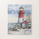 Quebra-cabeça amantes festivos do farol de aquarela de Natal