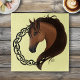 Um perfil do lado do cavalo marrom com nó celta tribal funciona em círculo num pano de fundo amarelo