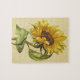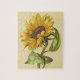 Características deste design temáticos florais do quebra-cabeça uma descrição do estilo do vintage de uma planta do girassol com as pétalas que caracterizam várias máscaras de amarelo e da laranja. Um quebra-cabeça como este pôde ser um presente do divertimento para alguém que gosta de crescer girassóis, ou talvez para alguém que gosta da Botânica.