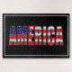 Vá para os EUA! O texto AMÉRICA em cores de sinalizador em um plano de fundo preto.