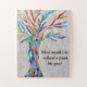 Esta quebra-cabeça decorativa de quebra-cabeça mostra uma árvore de mosaico em cores do arco-íris e as palavras, "Onde eu estaria sem um amigo como você?" Faz um presente único para um amigo especial. Porque nós criamos a nossa trabalho de arte, você não encontrará esta imagem exata de outros designers. Mosaico original © Michele Davies.