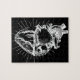 Um quebra-cabeça lindo que caracteriza um coração anatômico contra um fundo preto.