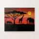 girafas, elefantes e rinocerontes em uma quebra-cabeça afro-sunset