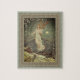 bela pintura de arte antiga de um anjo com roupas brancas e asas de ouro pairando e assistindo sobre uma cidade à noite. ilustração de arte cristã de uma cidade entre montanhas e neve sendo vigiada por um anjo da guarda.