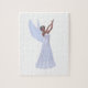 Características deste design um anjo de pele escura bonito em um vestido azul de fluxo. Sinta livre adicionar suas próprias palavras/imagens/cor do fundo através ferramentas da personalização de Zazzle das grandes! Este design foi criado perto, e usado com permissão de, http://www.outlawgraphics.com/