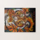 Ano chinês do quebra-cabeça do tigre, do tigre original do design com dragão oriental e dos lírios de tigre que cercam a! Unido as partes de seu sinal chinês do zodíaco com esta arte digital bonita confunda