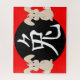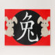 Caractere chinês para o cartaz do zodíaco do coelho e ilustração do coelho em branco em vermelho e preto.