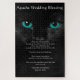 Essa bela bênção de casamento apache, que começa com "agora você não sentirá chuva. com um gato preto com olhos turquesa olhando para você texto branco e fundo preto.
