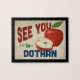 Um quebra-cabeça de serra de viagens vintage Dothan Alabama, encantador, com uma adorável maçã vermelha, junto com um texto divertido no estilo retrô que diz, "Vemo-nos em Dothan"