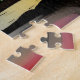 Quebra-cabeça artístico apresenta uma cena de aquarela digital gerada por IA de um belo pôr do sol sobre uma praia tropical com palmeiras.