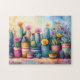 Quebra-cabeça Aquarela de cacto e flores de jardim