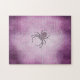 Uma aranha-viúva negra numa teia branca feita de pontos contra um fundo roxo.