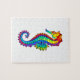 Articulação artificial, brilhante, arco-íris, cavalo de mar poligonal sobre fundo branco. Tatuagem brilhante.