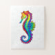 Articulação artificial, brilhante, arco-íris, cavalo de mar poligonal sobre fundo branco. Tatuagem brilhante.