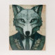 Esta quebra-cabeça apresenta um retrato de lobo com um vestido formal. Este é um quebra-cabeça excelente para coletores quebra-cabeça e amantes de lobos.