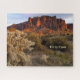 O quebra-cabeça é uma foto original de Karen Cofsense da Montanha Superstition no final da noite, à luz do sol de chocolate em primeiro plano, como visto na Trilha Crosscut de Jacob no Parque Estadual dos Países Baixos Perdidos, em Apache Junction, Arizona, um dos parques mais bonitos da área. Personalize isso com seu nome ou outro texto usando os vários estilos de fonte e cores diferentes do Zazzle. Adicione um ou mais dos muitos ícones divertidos que o Zazzle forneceu para você ou personalize-o na ferramenta design clicando em "clique para personalizar mais". Divirta-se fazer seu! Se precisar de ajuda, por favor, não hesite em me contactar, e ficarei muito feliz em ajudá-lo. Você pode entrar em contato comigo em KarenCoffelt@wolfmoonartanddesign.com. Obrigados de procurar! Direitos autorais da fotografia original de 2016 por Karen Cofsense.