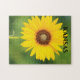Uma fotografia de um Sunflower Selvagem do Kansas que é brilhante e colorido com um fundo verde. É ao sul de Sterling Kansas USA numa estrada country. Isso é em um Quebra-cabeça.