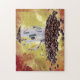 O copo de café em uma pilha de feijões aromáticos ajustou-se contra uma pintura textured do abstrato do pastel