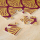 Um padrão de sereia se dimensiona em uma cor magenta escura, com fundo dourado. As escalas estão no estilo de deco de arte.