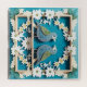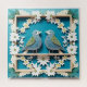 Arte colorida em papel representando dois jays azuis tocados em um galho, encapsulados em um quadro decorativo. A design mostra um intricado artesanato, matizes vibrantes e detalhes harmoniosos evocando a beleza e a criatividade da natureza.