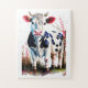 Quebra-cabeça Arte de Vaca Rústica com Blossomas - Decoração de